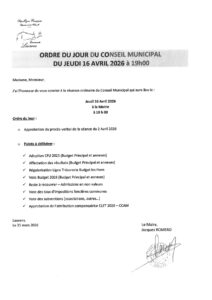 CONSEIL MUNICIPAL ORDRE DU JOUR par mairie | Fév 27, 2026 | Actualités ORDRE DU JOUR CONSEIL MUNICIPAL 16 04 2026