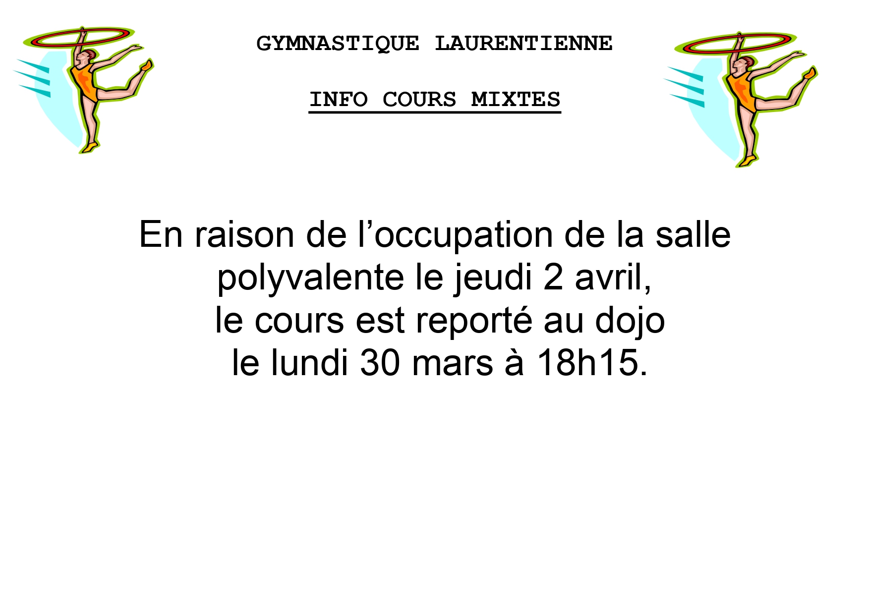 GYMNASTIQUE LAURENTIENNE – Cours déplacés